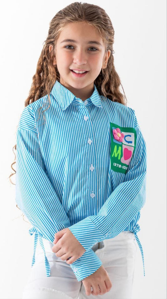Gestreiftes Mädchenhemd mit langen Ärmeln – Blau & Weiß – Farbenfrohes Design